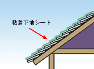 粘着下地シートを、コロニアルの上から貼ります。