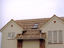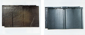 在来工法やプレハブなどの一般住宅はもとより、役所・学校・ホテルなどのコンクリート建築でも多彩採用され、[現代建築]にかかせない屋根瓦となっています。左は 釉薬瓦です。